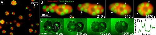 Dynamic sorting of nuclear components into distinct nucleolar caps during transcriptional inhibition.