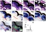 Fig. 1. The retina is essentially regenerated 30 days after resection. (AâD) The progress of regeneration was analyzed by hematoxylin and eosin staining. (A) The retina after resection of the nasal-dorsal quarter on day 1. The site of resection is evidenced by the disruption of the retinal lamination and RPE (red asterisks). (B) On post-resection day 3 the RPE has re-assembled around the site of resection (red arrow) and cells have begun to fill in the wound. (C) On post-resection day 13 the RPE has closed around the wound (red arrow) and RPCs have repopulated the wound. (D) On post-resection day 30 the lamination of the retina is completely restored and the resection site is no longer evident. (EâJ) Analysis of regeneration progress using markers of differentiated neural cell types. Immunolabeling for Islet-1 (EâG) and Rhodopsin (HâJ) in control retinas (E, H) and regenerating retinas at 15 days (F, I) and 30 days post-resection (G, J). Control retinas shown in panels E and H are from sibling embryos to those shown in panels G and J, respectively. At 15 days post-resection, the putative RPCs are still present at the site of resection (F, I; red bracket). The putative RPCs are not immunoreactive to Islet 1 (F; red bracket) or Rhodopsin (I; red bracket) antibodies. At 30 days post-resection, the putative RPCs are absent from the nasal-dorsal quarter of the retina and complete retinal lamination is observed by immunoreactivity to Islet-1 (G) and Rhodopsin (J). Uninjured retinas lack putative RPCs in the nasal-dorsal quarter and show Islet-1 and Rhodopsin immunoreactivities (E, H). L â lens; G â ganglion cell layer, I â inner nuclear layer; and P â photoreceptor layer. Scale bar = 50 μm. |