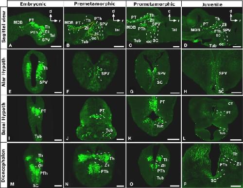 Milán, Patterns of calretinin, calbindin, and tyrosine-hydroxylase expression are consistent with the prosomeric map of the frog diencephalon. 2000, Pubmed , Xenbase