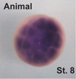mtss1.2 (metastasis suppressor 1, gene 2) gene expression in Xenopus laevis embryo, assayed via in situ hybridization, NF stage 8, animal view.
