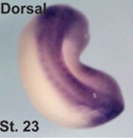 mtss1.2 (metastasis suppressor 1, gene 2 ) gene expression in Xenopus laevis embryo, assayed via in situ hybridization, NF stage 23 dorsal view, anterior up.