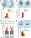 Fig. 2. Loss of PPan function strongly affects eye and craniofacial cartilage formation. (A) Schematic of Xenopus PPan protein illustrating the Brix domain (yellow) and Ï70-like motif (red). Beneath is illustrated the Ï70 deletion construct PPanδÏ70. (B) Endogenous PPan is strongly reduced in cells derived from PPan MO-injected Xenopus animal caps (ACs), as compared with Control MO-injected ACs. Scale bars: 20 μm. (C,D) PPan MO1 and MO2, but not Control MO, injection results in a severe eye (C) and cranial cartilage (D) phenotype on the injected side (arrowheads and arrows) in a dose-dependent manner. Co-injection of δ5â²UTR PPan RNA rescues PPan MO1-induced phenotypes, whereas PPanδÏ70 does not. ba, branchial arches; mc, Meckel's cartilage; ta, tectum anterius. Quantitative evaluations are given to the right. n, number of independent experiments; N, total number of embryos examined. Error bars indicate s.e.m. |
