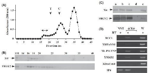 Note that FRGY2 was coimmunoprecipitated with Xtr. (D) Reverse transcriptionâpolymerase chain reaction (RTâPCR) of NMI- or anti-Xtr
