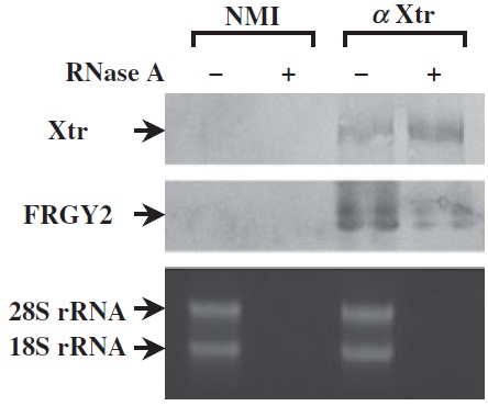 of normal mouse IgG (NMI)- or anti-Xtr-coimmunoprecipitated