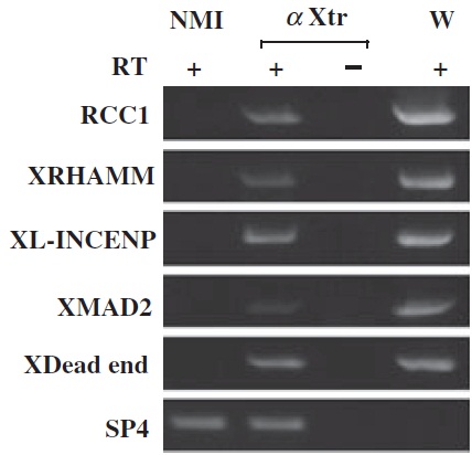 primers (RCC1, XRHAMM, XL-INCENP, XMad2, XDead end, and SP4) for PCR. W indicates total RNA (1 lg) from fertilized eggs