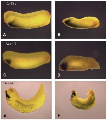 Fig. 4 The expression domains of GATA-4, Nkx2.5, and Hand1 are