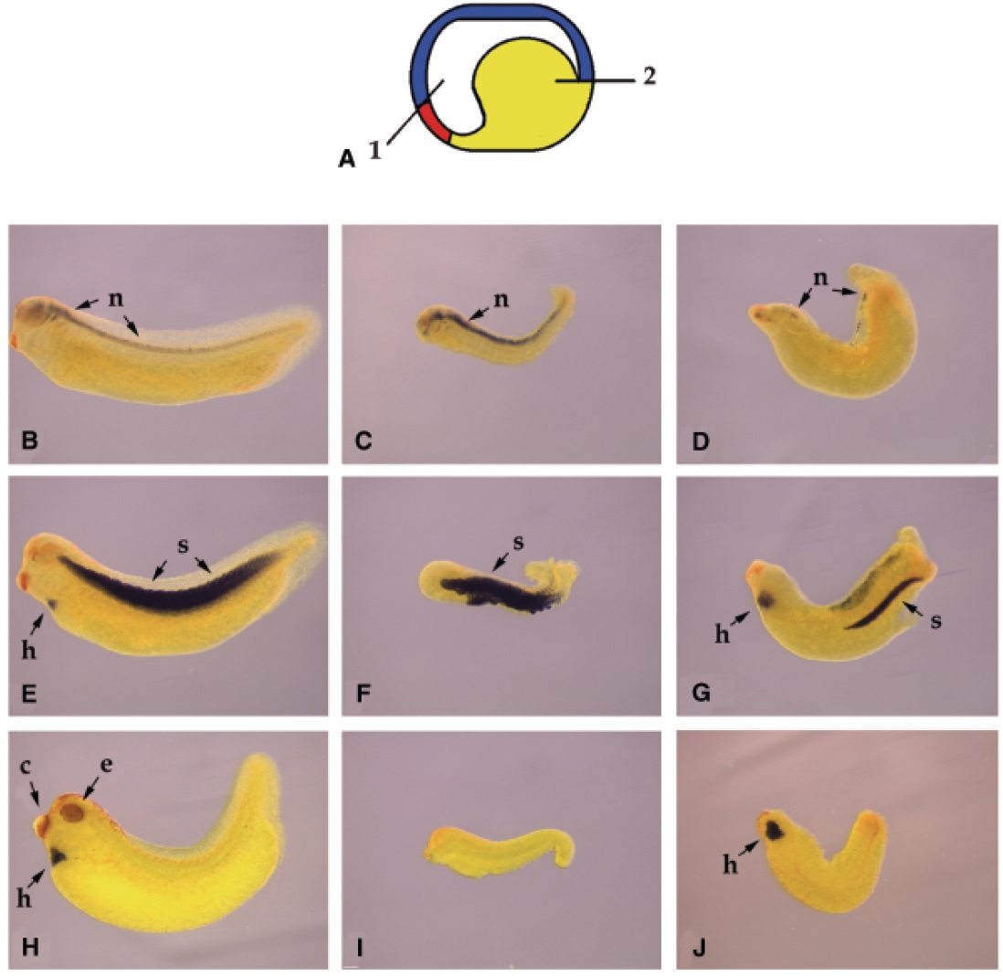 other embryo, the heart developing near ventral tissues (b; arrows)