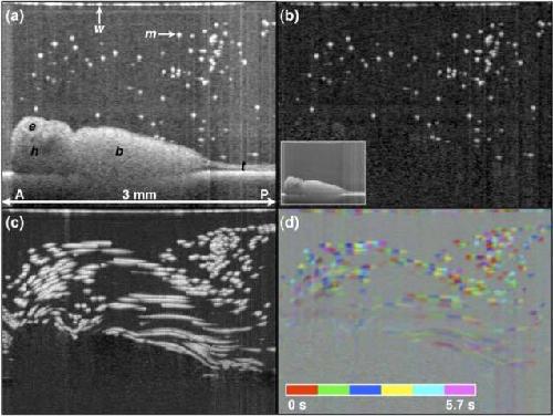 Dual-beam Fourier domain optical Doppler tomography of zebrafish.
