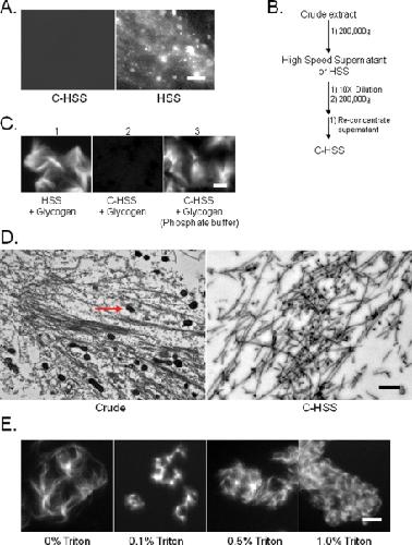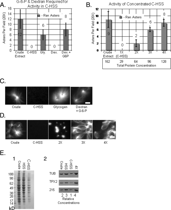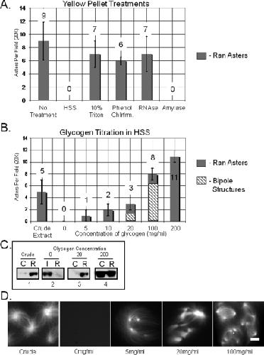 The assembly of microtubules during mitosis requires many identified components, such as γ-tubulin ring complex (γ-TuRC), components of the Ran pathway (e.g., TPX2, HuRP, and Rae1), and XMAP215/chTOG. However, it is far from clear how these factors function together or whether more factors exist. In this study, we used biochemistry to attempt to identify active microtubule nucleation protein complexes from Xenopus meiotic egg extracts. Unexpectedly, we found both microtubule assembly and bipolar spindle assembly required glycogen, which acted both as a crowding agent and as metabolic source glucose. By also reconstituting microtubule assembly in clarified extracts, we showed microtubule assembly does not require ribosomes, mitochondria, or membranes. Our clarified extracts will provide a powerful tool for activity-based biochemical fractionations for microtubule assembly.