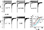 Figure 3. Changes of the V1/2 of the Poc-V curves of various mutants in response to 3 mM ATP at pHi 6.8. The Poc-V curves of each mutant in the absence and in the presence of 3 mM ATP were constructed from the same patch, and the V1/2 of the Poc-V curves were obtained by fitting the data points to a Boltzmann equation. The difference in V1/2 between control and 3 mM ATP (ΔV1/2) was first determined from each patch and then averaged (n = 14 for WT CLC-1 and n = 4–7 for various mutants). The label n.c. indicates that the mutant did not show functional current in at least two runs of expression in Xenopus oocytes. Error bars represent SEM.