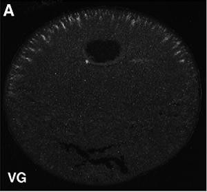 vangl2 (VANGL planar cell polarity protein 2) gene expression in sectioned Xenopus laevis embryo assayed by immunohistochemistry, NF stage 6, animal cap is up.