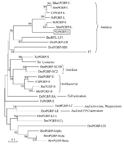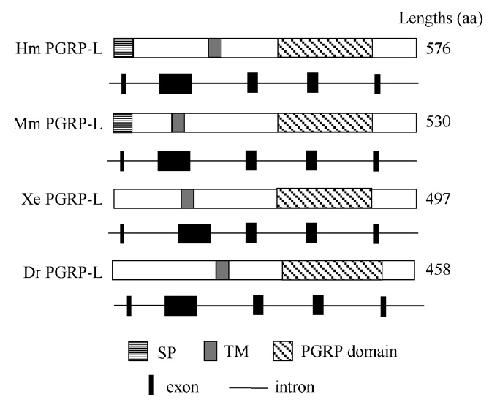 Fig. 1 Comparing the XtPGRP-L protein and gene structure