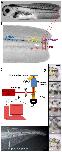 Figure 1. Illustration of the tadpoletail and techniques employed.(A) A stage 40 Xenopus tadpole shown 2â3 hours after amputation of one-third to one-half of the tail. (B) Enlargement of tail in A showing the regions targeted by the laser. Along the DV axis are the dorsal somite (dorSom); shoulder spinal cord (shSC), notochord (Noto), and ventralsomite (ventSom). Along the AP axis of the spinal cord are anteriorspinal cord (antSC); posterior spinal cord (postSC); and shoulder spinal cord (shSC). Scale barâ=â250 µm (C) Schematic of laser targeting setup. Pulses from an fs Ti:sapphire laser pass a shutter and neutral density filter (ND) before entering an inverted microscope housing a dichroic mirror (DM), microscope objective, and short pass filter (SPF). The tadpole sits atop a motorized x-y stage and is illuminated by white light (WL). The computer controls the shutter open/close duration and stage, while synchronously monitoring the specimen with a CCD camera. (D) Example of the five images that were recorded for each tail using 4à and 10à microscope objectives. Top to bottom they are: low magnification image before laser treatment, scale barâ=â150 µm; high magnification image used to focus and aim, scale barâ=â50 µm; high magnification record of the location and number of laser insults; high magnification image of laser damage; low magnification image of damage. (E) Image of a regenerated control tail including the position of the amputation plane (blue line) and the positions of the nine landmarks used for the Geometric Morphometrics analysis. Scale barâ=â1 mm.