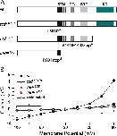 touchdown alleles tdotz310c, tdob508, and tdomi174 harbor mutations that abolish channel activity. A, A graphic representation of TRPM7 indicating the location of mutations in the three alleles of touchdown. CC, Coiled-coil domain; STP, serine-threonine-proline rich domain; KD, kinase domain. B, Average current responses of oocytes expressing wild-type TRPM7 or touchdown alleles to voltage ramps between −100 and +60 mV (n = 10 oocytes for each allele) showing that all three alleles lack channel activity (i.e., the currents in response to ramps were not significantly different from those of uninjected oocytes). Values represent the average ± SEM. *p < 0.05, t test. |