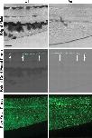 Selective restoration of TRPM7 expression in sensory neurons is sufficient to restore touch-evoked responses. A, Top, Lateral view of a 55 hpf larva labeled with a riboprobe against trpm7 showing that trpm7 is expressed widely in the larva. Boxed area indicates enlarged area shown below. Scale bar 200 μm. Bottom, Enlarged area highlighting a few RB sensory neurons expressing trpm7, with some RBs indicated with arrows. Scale bar, 50 μm. B, Top, Rescue plasmid comprised of the sensory neuron enhancer/promoter construct zCREST2-hsp70:TRPM7-eGFP. Bottom, Lateral view of the dorsal spinal cord following injection of the sensory enhancer/promoter construct labeled with anti-GFP showing that TRPM7-eGFP is expressed by many RBs, some of which are marked by arrows. Dashed line denotes the dorsal boundary of the spinal cord. Green labeling above dashed line was also observed in uninjected embryos, indicating that is background labeling of the skin by anti-GFP. Scale bar, 50 μm. C, Expression of TRPM7 selectively in RBs rescues touch-responsiveness in touchdown mutant larvae. Video frames of touch-evoked swimming from a 55 hpf hypopigmented touchdown mutant expressing the rescue plasmid. 0 ms is the video frame preceding contact of the embryo by the stimulating probe. Scale bar, 500 μm. |