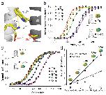 Figure 5. A cation-pi interaction in the potassium channel voltage-sensor(a) A model highlighting the proximity of Trp290 and Lys374 (PDB 3LNM); (b) Effect of fluorination at Trp290 on GV; insets show currents and ESPs for Trp (upper) and 4,5,6,7-F4-Trp (lower) (n = 5–7); scale for ESPs: red = −25 kcal/mol, green = 0 kcal/mol, blue = +25 kcal/mol; Scale bars: 2 μA for current, 50 ms for time; (c) Effect of fluorination at Trp290 on the Arg374 background; insets show currents and ESPs for Trp (upper) and 5,6,7-F4-Trp (lower) (n = 4–6); scale for ESPs as in (b); (d) Cation-pi plot for fluorination of Trp290 with Lys or Arg in position 374. ESPs for Trp derivatives are shown with scales as in (b).