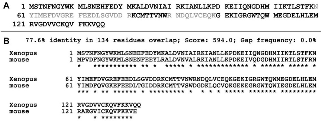 of Xenopus laevis hypothetical protein MGC81232 revealed that the Xenopus protein was 77.6%