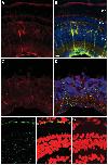 retinas in C and D. Red ¼ CRBP1; green ¼ glutamine synthetase; blue ¼ nuclei; and yellow