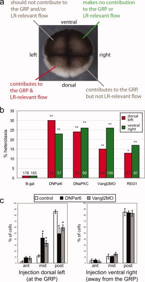 Planar cell polarity enables posterior localization of nodal cilia and left-right axis determination during mouse and Xenopus embryogenesis.