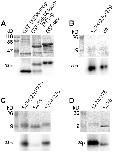 Figure 6. MARK2 directly phosphorylates the S274/276/279 cluster of mouse TRESK in vitro.A. GST-TRESKloop, GST-TRESKloop-TAPtag or GST-tau (positive control) fusion proteins were phosphorylated with constitutively active Trx-His6-MARK2-T208E in the presence of [γ−32P]ATP. The upper panel shows the SDS-PAGE gel stained with Coomassie Blue, whereas the autoradiogram of the same gel is on the lower panel. The two GST-fusion constructs containing amino acids 185–292 of mouse TRESK were labeled with 32P to a similar intensity as the GST-tau control (see the lower32P panel). In the GST-TRESKloop-TAPtag sample, an incompletely translated (or degradation) product (slightly larger than GST-TRESKloop in the other lane, see the upper panel) was also phosphorylated. B. Wild type TRESKloop-His8 (wt.) or the mutant version of this protein containing only S274, S276 and S279 (S274/276/279 lane) were phosphorylated with GST-MARK2-T208E. Note that the substrate containing only the three serines of the S274/276/279 cluster was also strongly labeled with 32P. C. The mutant TRESKloop-His8 substrates, containing only the serines indicated above the lanes, were phosphorylated with GST-MARK2-T208E. Both substrates retaining S274 and S276 (S274/276/279 and S274/276 lanes) were labeled with 32P, in contrast to the protein containing only serine 264 (S264 lane). D. The mutant TRESKloop-His8 substrates, containing both serine 274 and 276 (S274/276 lane) or only serine 276 (S276 lane) were phosphorylated with GST-MARK2-T208E. Note that the S276 substrate was labeled with 32P, although to a lesser extent than the protein retaining both S274 and S276.