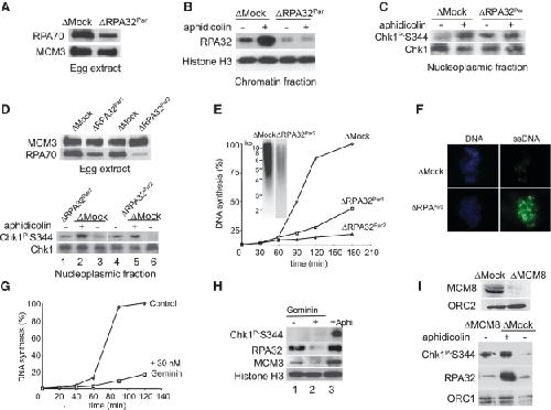 Genes referenced: atr chek1 gmnn lss mcm3l mcm8 rpa1