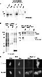 Figure 4. dnUbc9 does not alter decatenation activity of Xenopus topoisomerase II. (A) Chromosomal proteins were prepared from sperm chromatin assembled with or without 150 ng/μl dnUbc9 and assayed for decatenation activity as described in Materials and methods. Serial dilutions of chromosomal proteins were performed, in order to add the equivalent of the volumes indicated in each lane into decatenation reactions. For comparison, reactions were performed using purified human topoisomerase II, with the number of manufacturer's unit per reaction indicated. A fully decatenated marker was loaded in the lane marked D, and a linearized marker was loaded in the lane marked L. The lane marked 0 shows kinetoplast DNA from a control reaction without added chromosomal proteins. (B) Western blot of chromosomal eluates from extracts without (left) or with (right) dnUbc9 used in the decatenation reaction.