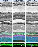 Short-term metabolic changes in bP23H retinas. AâI, Visualization of metabolic content and distribution by quantitative metabolite mapping on 90 nm sections probed with Igs specific to each metabolite and visualized with silver intensification. JâL, Redâgreenâblue channels represent taurineâglutathioneâglutamate mapping. The pink and red compartments in the photoreceptor outer segments (OS) and inner segments (IS) contain distinct taurineâglutamateâglutathione mixtures, whereas various blue-to-azure cells in the interneuron layer (INL) and ganglion cell layer (GCL) are neurons with distinctive glutamate content. The greenâyellow background of RPE reflect high levels of glutathione. MâO, Theme maps display results of multispectral analyses and clustering analyses to extract all distinct molecular phenotypes in the photoreceptor layer. Signals from glutamate, glutathione, taurine, aspartate, GABA, glycine, arginine, alanine, and CRALBP were used for multispectral analyses and clustering analyses. M, N, Theme maps show that the metabolic profiles of rods and cones in control and degenerating retina were similar; whereas in recovering retina, rods displayed variability in their metabolic profile because of variability in their taurine, glutamate, and glutathione content. Arrows and arrowheads indicate Müller glia and regenerating rods, respectively. |