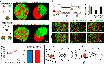 Figure 1. NC Cells Exhibit Mutual Cell Attraction(A) NC migration in vivo in a zebrafish embryo (time in minutes). Colored cells show that they maintain their neighbor relations during migration in vivo.(B) In vitro Xenopus migratory NC cell cluster showing spontaneous collective migration in a restricted space.(C and D) Temporal evolution of a computer model that shows that CIL alone leads to cell dispersion (C), but if an attractive interaction (coattraction [CoA]) counterbalances CIL, collective migration may emerge (D). Cells are allowed to migrate in the black zone and repelled by the blue borders. They stop moving when they reach the bottom and turn orange.(E) NC explants attract each other in vitro.(F) Quantification method to determine CoA vector.(G and H) CoA vector plots. NC/NC confrontation pairs show significant CoA (G; p < 0.001; n = 36), but NC/Epidermis pairs do not (H; NS, n = 12). NS, not significant. Red arrow shows average vector. Gray area indicates circular dispersion.(I and J) Temporal evolution of a computational model showing that CoA is feasible. (I) Profiles of the attractant concentration. (J) Spatial distribution of two groups of particles. Note that the two groups move toward each other.(K and L) CoA in vivo. Left panel shows experimental scheme. Middle panels illustrate start and end point. Right panel indicates centered tracks. Grafts of labeled NC cells (green) join endogenous (red) NC cells (K; 77%; n = 13) but disperse radially when grafted in embryos without NC cells (L; 0%; n = 15).See also Figure S1 and Movies S1, S2, and S3. |