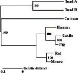 Comparison of the amino acid composition of the deduced toad AMBN proteins with that of human, mouse and caiman AMBN proteins. Analysis for the secreted proteins was conducted after elimination of the signal peptides.