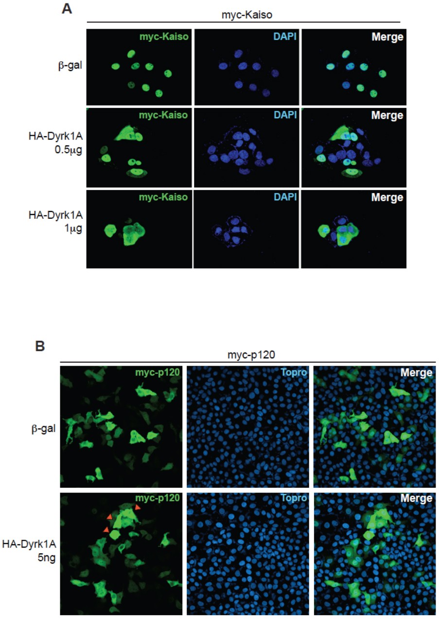 Down's-syndrome-related kinase Dyrk1A modulates the p120-catenin-Kaiso trajectory of the Wnt signaling pathway.