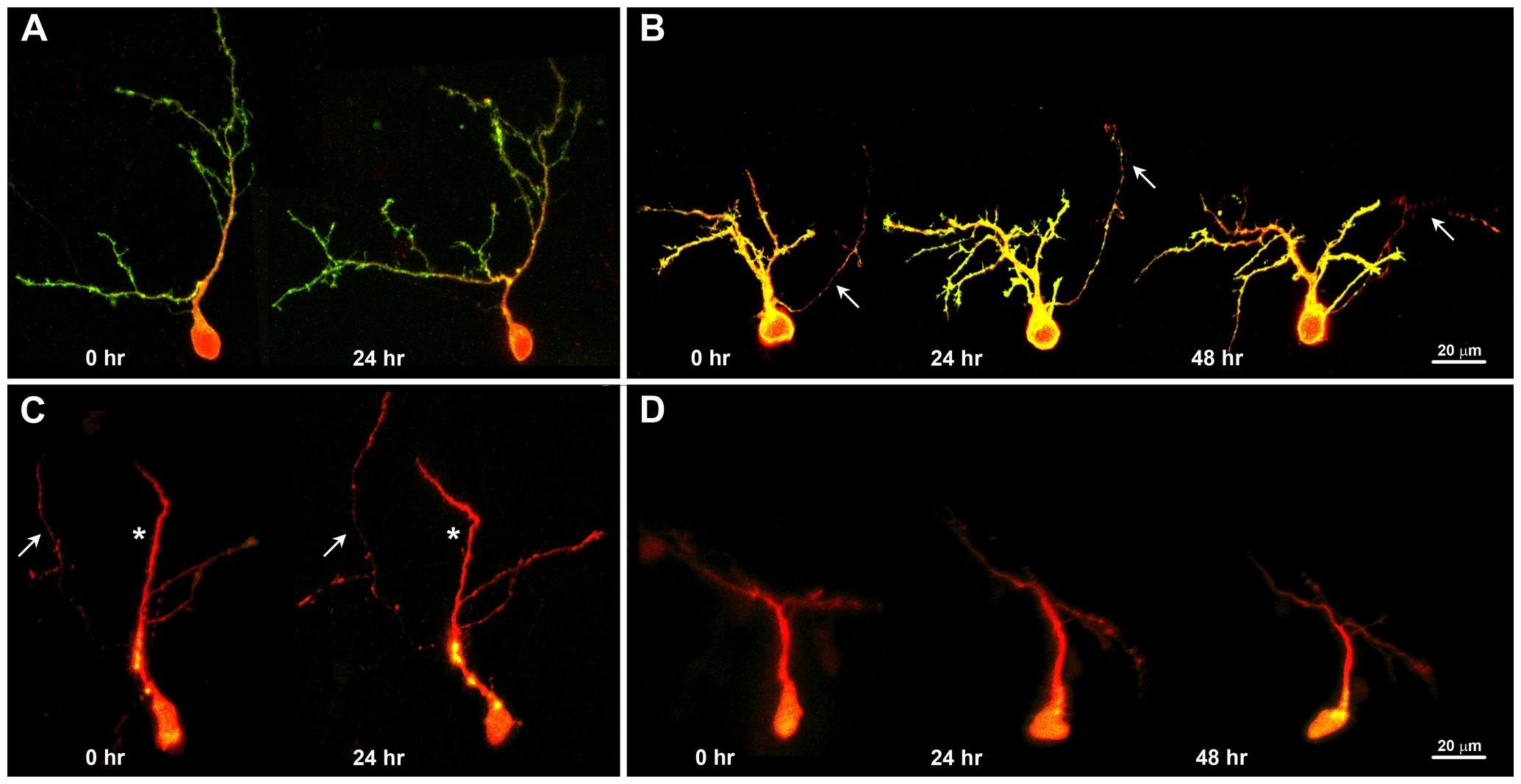 together with GFP (green; IRES-GFP construct) from stage 45 Xenopus tadpoles illustrate the morphologies and dynamics of tectal neuron dendritic