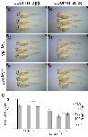 Fig. 5. Co-injection of xCOUP-TF-B enhanced the head defect pheno- type induced by ectopic expression of xCyp26A or xCyp26C. (A-F) 500 pg of xCyp26A (C, D) or 500 pg of xCyp26C (E, F) was co-injected with xCOUP-TF-B (D, F), and injected embryos were observed at stage 40. (G) The open graph bar indicates head defect index (left column; Michiue et al., 2004) and gray bar indicates average eye size of injected embryo (right column). 26A and 26C indicates xCyp26A and xCyp26C, respectively. Error bar indicates S.E.