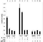 Figure 7. A synthetic NF-κB reporter gene is coactivated by β-Catenin.Luciferase activity at midgastrula (NF11) produced by injection of the reporter constructs pNF-κB+ (containing 4 κB binding sites) and pNF-κBâ (containing none) into both blastomeres of either the dorsal or ventral side of 4-cell stage embryos. β-Catenin (25 pg; lanes 5â8) and E-cadÎE (50 pg; lanes 9â12) RNAs were co-injected with the reporter. Y-axis shows x-fold stimulation of luciferase activity over uninjected controls after normalization to the internal Renilla control. |