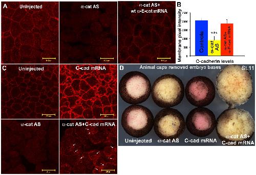 Figure 3. α-E-catenin is required for C-cadherin expression on the cell surface in the blastula.