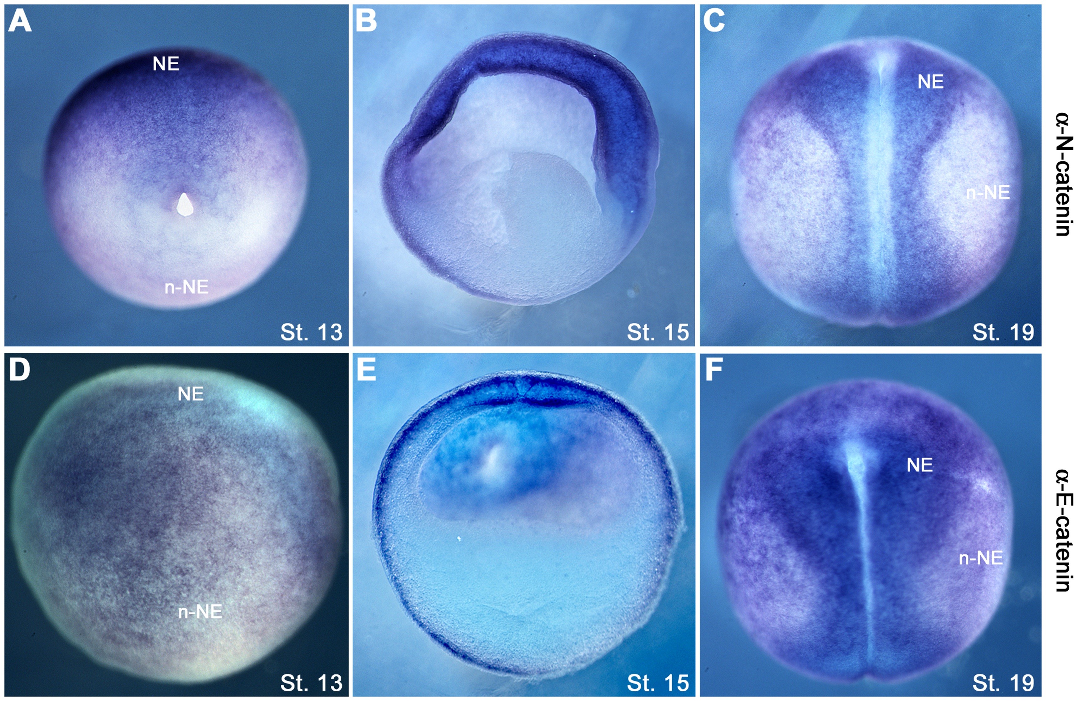 Figure 4. The distribution of α-N-catenin and α-E-catenin mRNAs in the neural and non-neural ectoderm.