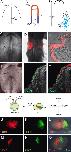 ig. 2. The Otx2/Gbx2 boundary separates otic and trigeminal precursors. (A) Diagram showing HH 7 stage chick embryo: the distance from the center of Hensen's node to the anterior tip of prechordal plate (hn-pc) and from the midline to the edge of the neural plate (ml-np) were set to 100%, respectively. The position of DiI label was measured and expressed as percentage of each distance. (Aâ²). The position of the Gbx2/Otx2 boundary was measured using the same landmarks. In total 9 embryos were measured with the boundary on average at 35±7%; most anterior position measured: 42%, most posterior position: 24.5%. (B) Diagram combining labels from this study and published fate maps ( [Streit, 2002] and [Xu et al., 2008]); gray: labels contributing to the trigeminal placode; blue: labels contributing to the otic placode. Circles: labels from published fate maps; squares: labels with dual fate from the current study; stars: labels from the current study. 35% indicates the average position of the Otx2/Gbx2 boundary (dotted line)±standard deviation (small arrow); note: mixed trigeminal and otic fates mostly locate near this boundary. (C) HH7 embryo with DiI labeled cells posterior to the average position of the Otx2/Gbx2 boundary (white line). (D) and (E) At HH12 their descendants contribute to the otic placode as shown in whole mount (D) and in transverse sections (E) and (F). HH7 embryo with DiI label anterior to the average position of the Otx2/Gbx2 boundary (black line). (G) and (H) At HH11 their descendants overlap with Pax3 protein (green) in the trigeminal placode. In total, 21 labels were placed into the Otx2+ and 12 into the Gbx2+ domain. (I) Diagram showing the experimental design: blastomeres were injected at the 64-cell stage in Xenopus and their position scored at stage 14. Arrows show the orientation of all embryos. (J)â(L) Neighboring blastomeres were injected with nGFP and nRFP and grown until stage 14. Descendants from injected cells are intermingled as indicated by red and green outlines in L (100%, n=10). (M)â(O) When injected with nGFP/Otx2 and nRFP/Gbx2 descendants from adjacent blastomeres do not mix (boundary in 79% of embryos, n=14). Red and green outlines in O show the distribution of cells. |