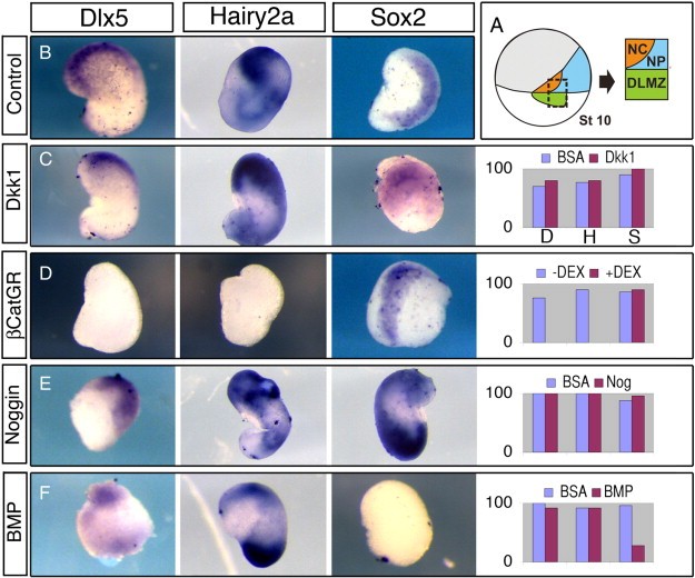 Genes referenced: bmp4 dkk1 dlx5 hes4 msx1 nog npb pax3 snai1 snai2 sox2 sox3 zic3
