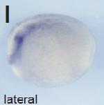 kctd15 (potassium channel tetramerization domain containing 15) gene expression in Xenopus laevis embryo, assayed via in situ hybridization, NF stage 10.5, horizontal view, animal up. |