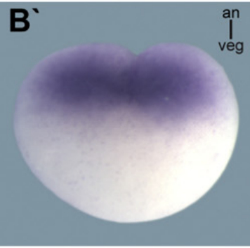 atp4a ( ATPase, H+/K+ exchanging, alpha polypeptide ) gene expression in Xenopus laevis embryo, assayed via in situ hybridization, NF stage 2, animal view. |