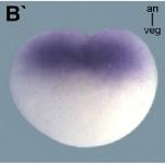 atp4a ( ATPase, H+/K+ exchanging, alpha polypeptide ) gene expression in Xenopus laevis embryo, assayed via in situ hybridization, NF stage 6, animal view. |
