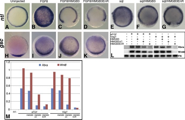 Genes referenced: fn1 foxi1 gsc hmgb3 krt12.4 sox2 sox3 tbxt wnt8a