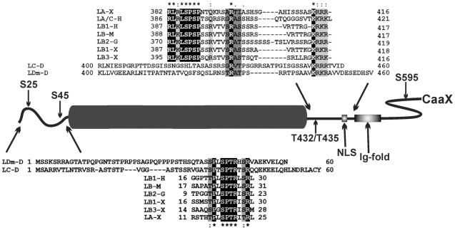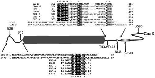Leukel, Two conserved serines in the nuclear localization signal flanking region are involved in the nuclear targeting of human lamin A. 1995, Pubmed