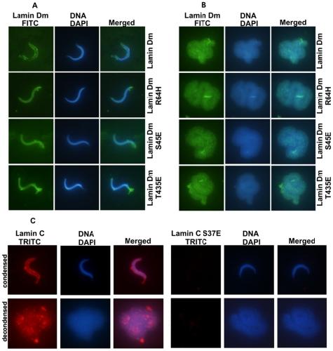The different function of single phosphorylation sites of Drosophila melanogaster lamin Dm and lamin C.