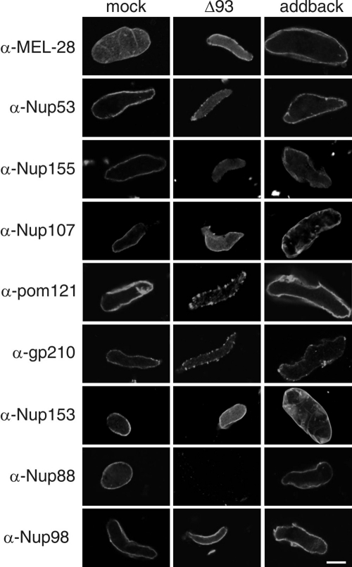 The C-terminal domain of Nup93 is essential for assembly of the structural backbone of nuclear pore complexes.