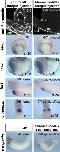 Figure S1. Developmental expression of szl, bmp2, bmp4, bmp7 and hhex. In situ hybridization to a stage series of Xenopus laevis embryos with the progressive steps in foregut organogenesis indicated on the left. Embryos stages 10.5-20 are bisected. Stage 10.5 gastrula embryos are oriented dorsal left and ventral right. All other stages are anterior left and ventral down. In the gastrula hhex and bmp2 are expressed in the dorsal mesendoderm, whereas szl, bmp4 and bmp7 are expressed on the opposite side of the embryo in the ventral mesoderm. After gastrulation this szl-, bmp4- and bmp7-expressing tissue has moved to the ventral-posterior side (stage 18-20), at which point szl, bmp2 and bmp7 are also expressed in the ventral foregut and precardiac mesoderm. ss, somite stage. |
