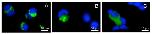 Figure 3. Comparison of Xenopus laevis tadpole and adult peritoneal macrophages infected by FV3. Peritoneal leukocytes were collected from one adult (A) or from 10 pooled pre-metamorphic tadpoles (B and C) 2 days after FV3 infection by intraperitoneal injection. Cells were fixed, stained with a rabbit anti-53R (green) and DNA dye Hoechst-33258 (blue), then mounted in anti-fade medium and visualized with a Leica DMIRB inverted fluorescence microscope.
