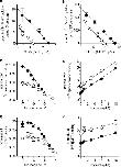 a, [3H]5-HT influx into cells stably expressing hSERT was measured in the absence (filled circles) or presence (open circles) of 10 μm ibogaine. The incubation time was 1 min and nonspecific uptake was measured in the presence of 10 μm paroxetine. b, [3H]MPP+ influx into cells stably expressing hDAT was measured as above using a 3-min incubation in the absence (filled circles) or presence (open circles) of 10 μm ibogaine. Nonspecific uptake was determined in the presence of 10 μm mazindol and was subtracted to the given values. The data in a and b are shown in form of Eadie-Hofstee plots, where the intercept on the y axis is equivalent to the Vmax and Km is given by the negative of the slope. For SERT the slopes at 0 and 10 μm ibogaine were statistically equivalent (p = 0.90 F test) and therefore globally fit with −6.18 ± 0.33 μm with a y intercepts of 15.51 ± 0.57 pmol/106 cells/min (R2 = 0.99) at 0 μm ibogaine and 7.92 ± 0.38 pmol/106 cells/min (R2 = 0.95) at 10 μm ibogaine. For DAT the slopes were also equivalent (p = 0.24 F test) and fit with −20.37 ± 0.8 μm with a y intercept of 272.30 ± 8.64 pmol/106 cells/min (R2 = 0.99) at 0 μm ibogaine and 191.70 ± 6.75 pmol/106 cells/min (R2 = 0.97) at 10 μm ibogaine. c–f, competition between ibogaine and 2 nm [3H]imipramine bound to SERT (c and d) and between ibogaine and 10 nm [3H]WIN35,428 bound to DAT (e and f) in the presence and absence of 10 μm 5-HT and DA, respectively. c, [3H]imipramine was displaced by ibogaine with an IC50 of 1.94 μm [1.71–2.21] (R2 = 0.95) in the absence of 5-HT and with an IC50 of 5.76 μm [3.72–9.00] (R2 = 0.85) in the presence of 10 μm 5-HT. 10 μm 5-HT reduced initial binding to 47% (95% confidence interval, 43–51). d, Dixon plot obtained by transformation of c. The slopes in d are 0.37 μm−1 (0.35–0.40) and are not statistically different (p = 0.38). e, [3H]WIN35,428 was displaced by ibogaine with an IC50 of 12.33 μm (10.46–14.54) (R2 = 0.99) in the absence of DA and with an IC50 of 23.14 μm (17.49–30.60) (R2 = 0.98) in the presence of 10 μm DA. 10 μm DA reduced initial binding to 57% (54–60). f, Dixon plot obtained by transformation of e. The slopes in f are 0.076 μm−1 (0.059–0.093) and are not statistically different (p = 0.50).