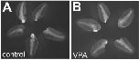 Fig. 7. VPA does not inhibit tail development in Xenopus laevis: Stage 32 tail buds were extirpated and cultured in the absence (A) or presence (B) of 0.2 mg/ml VPA for 24 h until stage 40 (stage of photographs) Both cohorts exhibited normal automomous development of the somites, spinal cord, notochord and fin.