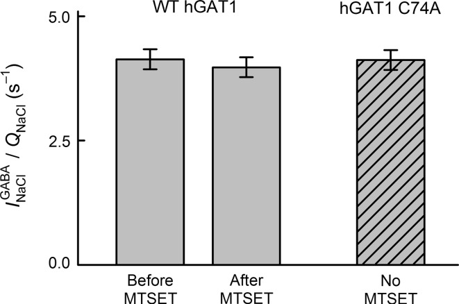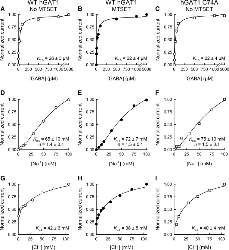 Yu, Topological localization of cysteine 74 in the GABA transporter, GAT1, and its importance in ion binding and permeation. 1998, Pubmed , Xenbase