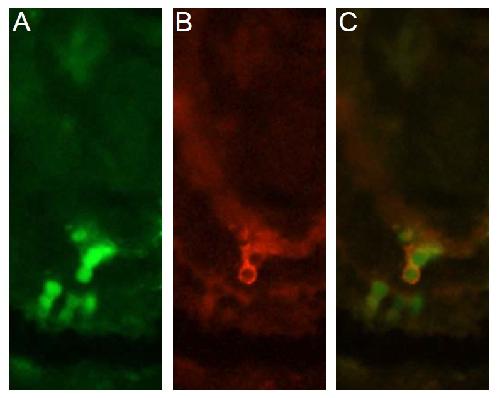 (A-C) Xenopus prune was over expressed with GFP (green) and then, the retina was stained with A59 (red). GFP positive cells are A59 positive. This indicates that A59 antibody recognise Xenopus prune protein too. |